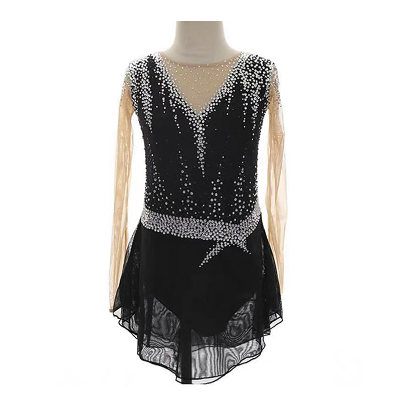 Eiskunstlaufkleid Damen Mädchen Eislaufen Kleid Schwarz Patchwork Daumenloch Netzstoff Spandex Dehnbar Training Übung Professionell Eiskunstlaufkleidung Thermowarm Kristall / Strass Langarm Eislaufen