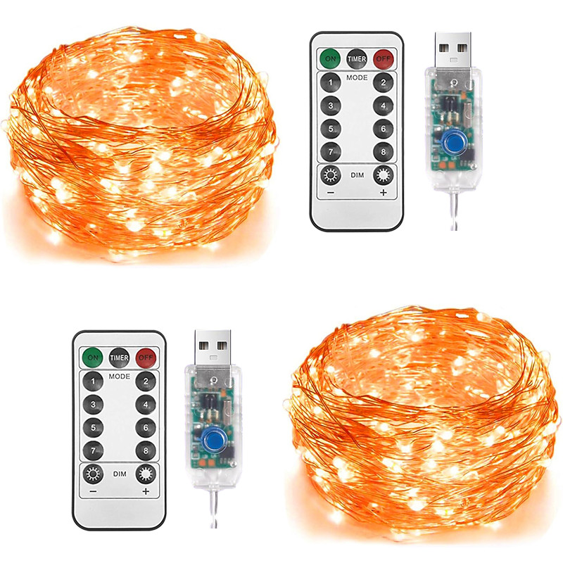 Solar Power String Light 20M 30M 50M with Remote Control Thanksgiving Outdoor Party Garden Decoration Fairy Lights Plug-in Dual Purpose Gypsophila Copper Wire Lights Set 24V