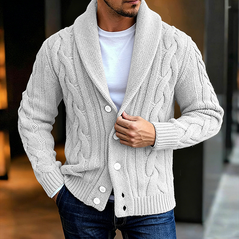 Men's Cable Knit Jumper Sweater Cardigan Sweater Cable Knit Regular Tops Knitted Plain Shawl Collar Modern Contemporary Casual Casual Holiday Clothing Apparel Spring Fall Blue Army Green M L XL