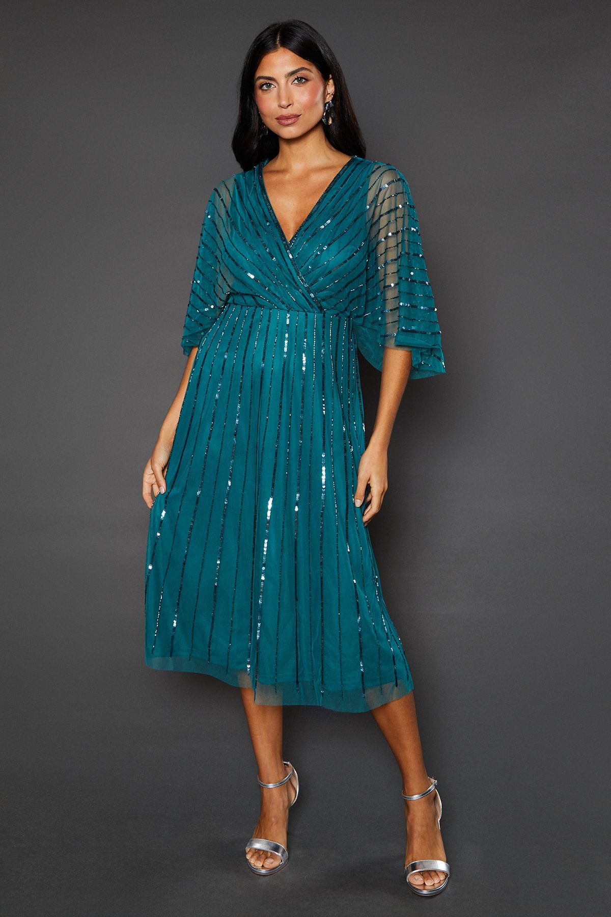 Wallis Womens Petite Occasion Embellished Cape Midi Dress - Green - Size 16 UK | Wallis Sale | Discount Designer Brands