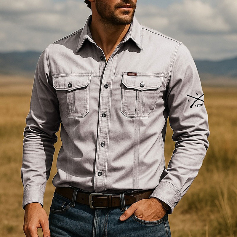 Men's Letter Printed Arrow 1776 Work Shirt Western Shirt Cargo Shirt Long Sleeve Tactical Vintage Retro Sports Outdoor WorkWear Spring Fall Turndown Front Two Pockets Button Up Shirts Army Green