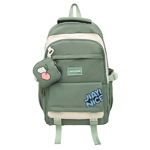 rosa-weißer Teenager-Rucksack mit süßem Patch und Tasche – kawaii Schultasche für Mädchen, bereit für die Schule