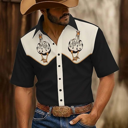 Per uomo Divertente Anatra Color-blocking Camicia Camicia Western Camicia da cowboy Manica Corta Vintage Retrò All'aperto Vacanza Abbigliamento da lavoro Estate Primavera Collo ripiegato Stampa 3D