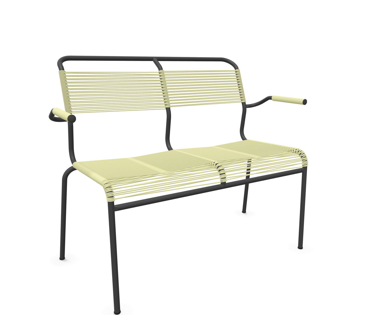 Schaffner Spaghetti-2er-Bank Säntis mit Lehne Gelb | Schubiger Möbel