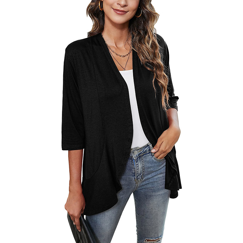 Women's Blouse Ruffle Cardigan Work Elegant Stylish Modern 3/4 Length Sleeve Black Summer Spring