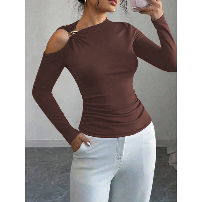 Women's T shirt Crew Neck Long Sleeve Tunic Casual Print Regular Tops Daily Wine Brown Green Gray Spring Fall