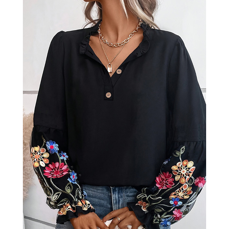 Women's Blouse Solid Color Casual Long Sleeve V Neck Regular Tops Black White Pink Blue Spring Fall