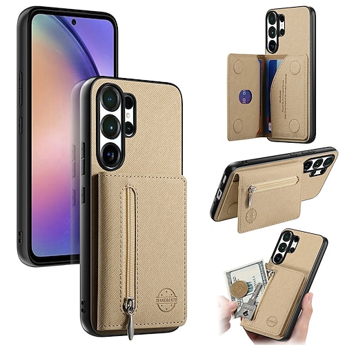 Handy Hülle Handyhüllen Für Samsung Galaxy S26 S26 Plus S26 Ultra Rückseite Brieftaschenhülle Mit Ständer Reisverschluss Ständer Retro TPU PU-Leder