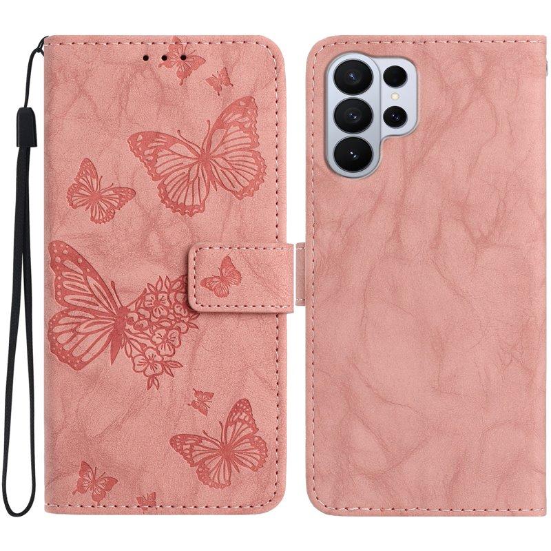 Samsung Galaxy S26 Ultra Fodral Äkta Läder Blomma Prägling - Rosa