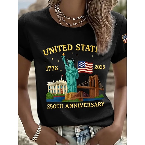 Giorno dell'Indipendenza Maglietta Patriottica da Donna Stampa Grafica Bandiera Vintage Elegante Classica Maniche Corte Collo A Giro Tasca Regolari Quotidiani Fine Settimana Stampa Nero Bianco Blu