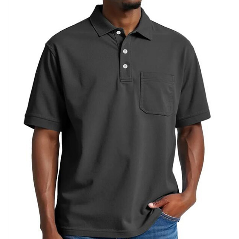 Men's Golf Shirt Golf Polos Shirts Work Casual Lapel Short Sleeve Basic Modern Plain Pocket Buttons Summer Regular Fit Black White Light Green Red Navy Blue Light Purple Golf Shirt
