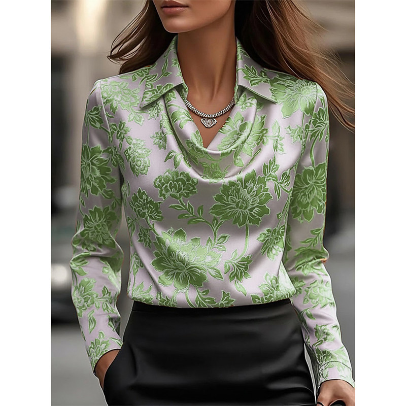 Women's Shirt Floral Elegant Stylish Casual Long Sleeve Cowl Neck Regular Tops Daily Work Holiday Print Draped Light Green Pink Light Purple Spring Fall