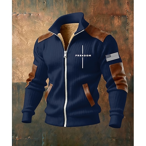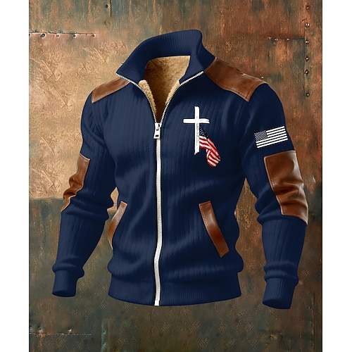 Per uomo Felpa con cappuccio a zip intera Giacca in Pile Felpa con cappuccio in pile Nero Bianco Verde militare Blu marino Marrone Colletto Mao Croce Bandiera Americana Tasca Dettagli in similpelle