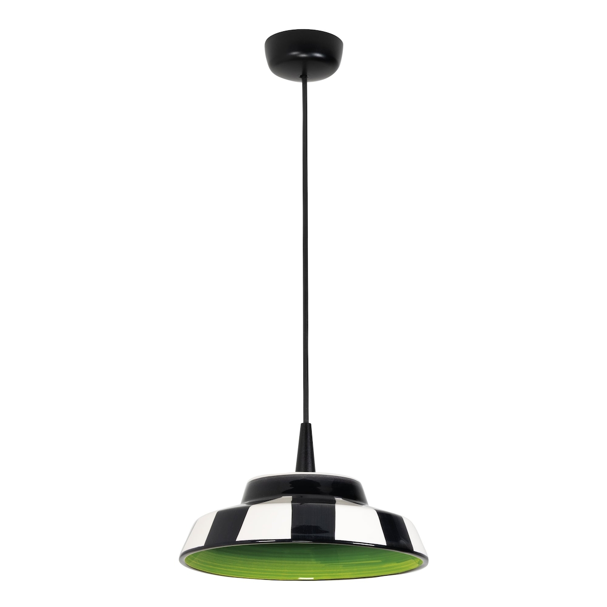 Zafferano Zirkusgrüne Pendelleuchte aus handgefertigter Keramik, Made in Italy, LED 8W 2700K, Durchmesser 24 cm, Höhe 300 cm, zweifarbiges Streifendesign