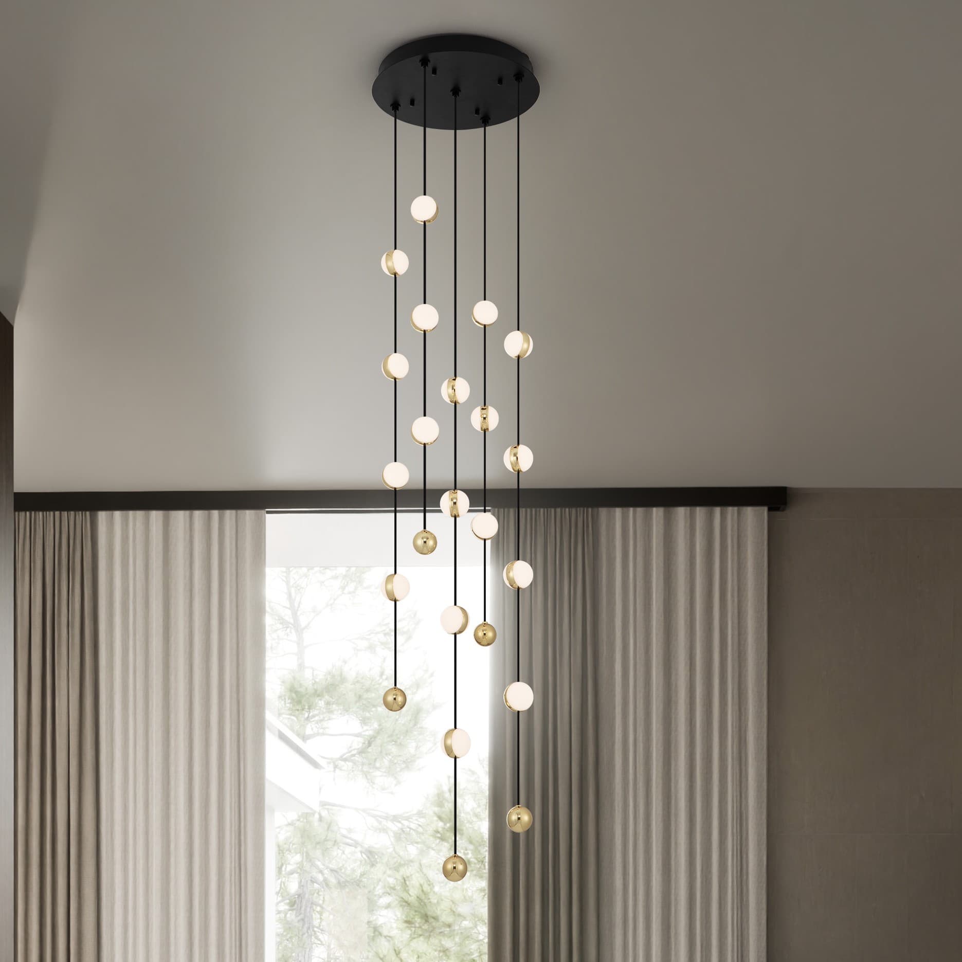 Nova Luce Lune - hanglamp - 20 x 170 x 81 cm - 44W dimbare LED incl. - zandzwart en chroom
