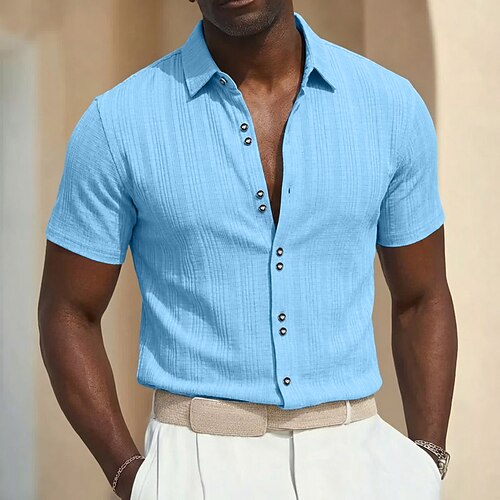 Per uomo Camicia Camicia Estiva Camicia casual Camicia da Spiaggia Camicia con Bottoni Nero Bianco Rosa Rosso Blu marino Manica Corta Tinta unica Bavero Vacanza Casuale Tasca Abbigliamento Moda