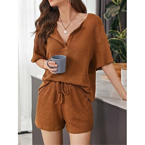 Per donna Abbigliamento da Casa Set Pigiama Moda Casual Morbido Grafico Patchwork Bottoni Shorts Casa Vacanza Manica Corta Scollo a V Nero Bianco Rosa Oro Estate Primavera Autunno Vestibilità regolare