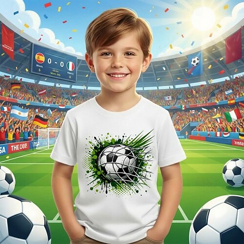 100% Cotone Bambini Ragazzi Nero Bianco Grafico Calcio Magliette da calcio Maglietta Blusa Girocollo Manica Corta All'aperto Abbigliamento casual alla moda Sportivo Moda Streetwear Designer Stampa
