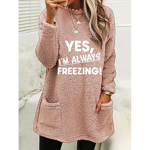 Per donna Felpa Pullover Lettera Casual Manica Lunga Girocollo Top lunghi Streetwear Abbigliamento Quotidiano Tasca Stampato Blu Nero Bianco Rosa Verde militare Autunno Inverno