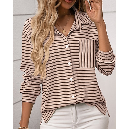Per donna Camicia Geometrico Quotidiano Elegante Essenziale Manica Lunga Colletto a Camicia Top Regolari Lavoro Quotidiano Ferie Bottoni Nero Bianco Cachi Primavera Autunno