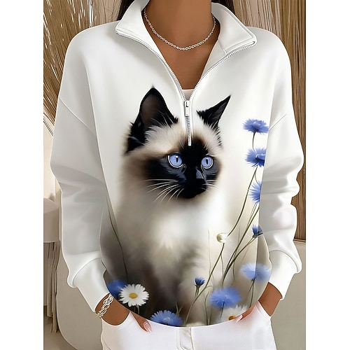 Per donna Felpa Pullover Grafico Animale Casual Manica Lunga Mezza zip Top Regolari Casuale Abbigliamento Quotidiano Ferie Cerniera Nero Bianco Kaki Beige Primavera Autunno