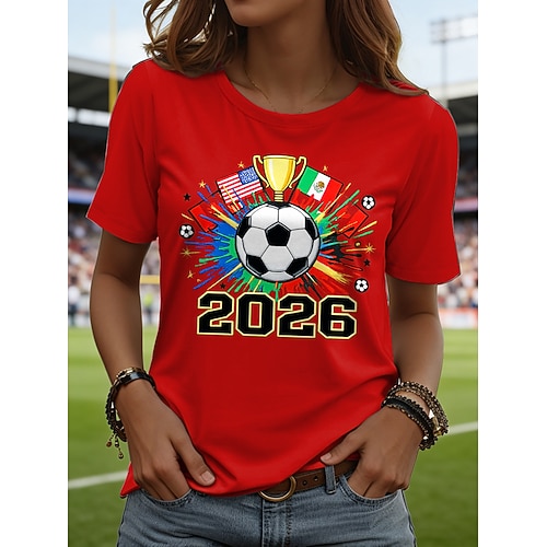 Per donna Maglietta Stampato Grafico Squadra di calcio Elegante Classico Casual Manica Corta Girocollo Top Regolari Quotidiano Blu Nero Bianco Rosso Estate Primavera