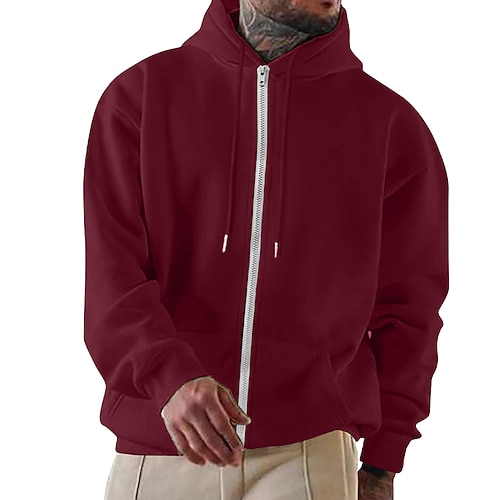 Per uomo Felpa con cappuccio Felpa con cappuccio a zip intera Felpa con cappuccio tattica Rosso bordeaux Nero Rosa Verde militare Blu Con cappuccio Liscio Compatto Sportivo Giornaliero Streetwear