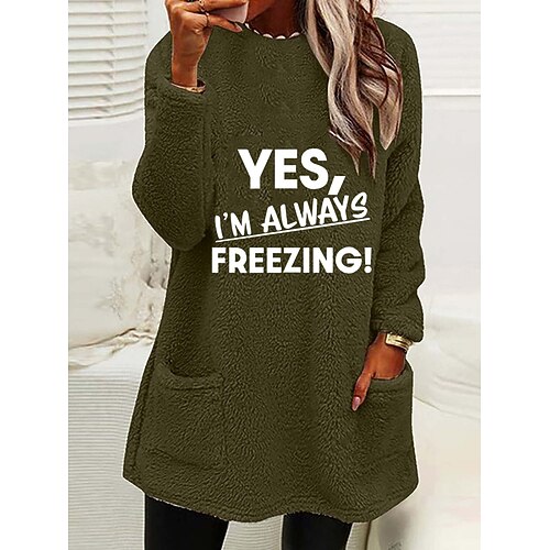 Per donna Felpa Pullover Lettera Casual Manica Lunga Girocollo Top lunghi Streetwear Abbigliamento Quotidiano Tasca Stampato Blu Nero Bianco Rosa Verde militare Autunno Inverno