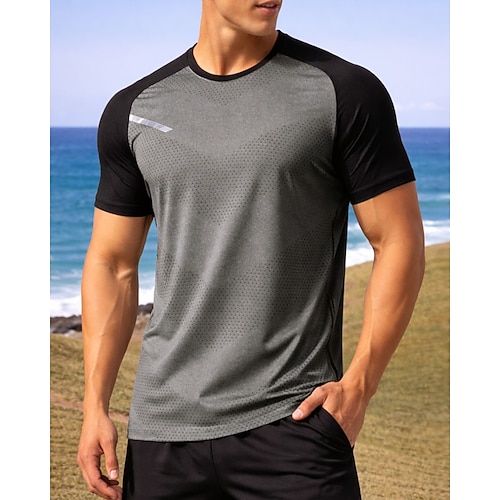 Per uomo Blocco di colori T-shirt da corsa Maglia a compressione Maglia atletica Sport in alto Estate Patchwork Manica Corta Asciugatura Rapida Leggero Traspirante Allenamento in Palestra Camminata