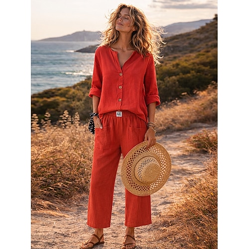 completi coordinati da donna camicie di cotone set camicia pantaloni di cotone pantaloni casual camicia mix completo coordinato 2 pezzi sportivo streetwear semplice quotidiano manica lunga estate