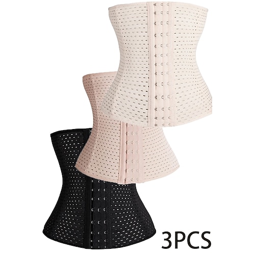 3 pezzi corsetto modellante da donna per la vita, controllo addominale, push-up, chiusura frontale, ideale per camminare, ufficio, guidare, palestra, sport, traspirante, tinta unita, gancio occhio