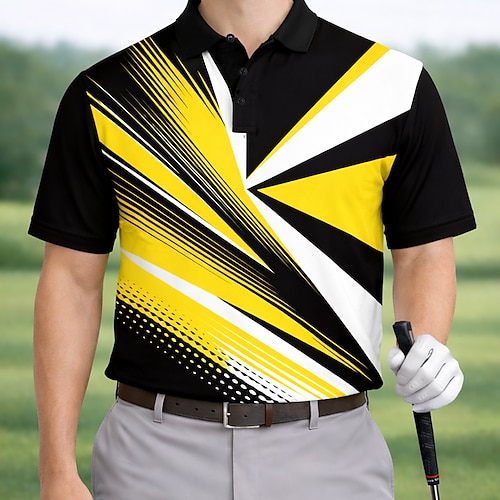 Per uomo Geometrico Golf Polo Sportivi Manica Corta Magliette polo Camicie con Colletto Casual Athleisure Abbigliamento quotidiano Stampa 3D Bottoni Estate Primavera Nero