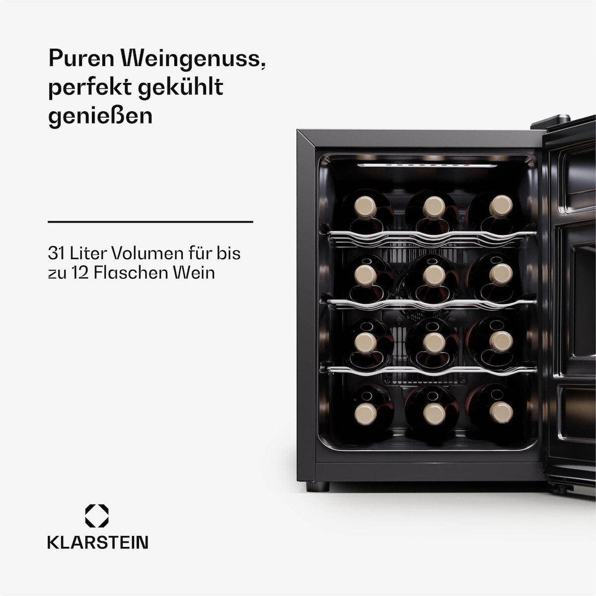 Klarstein Silent Vino 12 Uno Weinkühlschrank 31 L / 12 Fl 5-18 °C Touch Schwarz