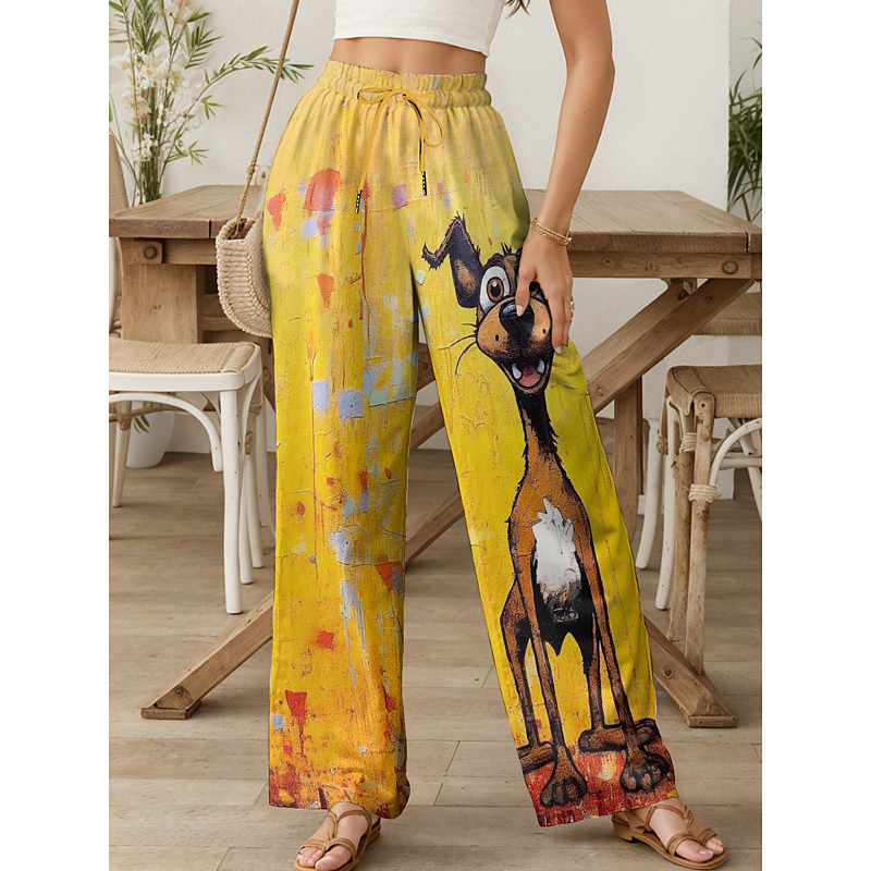 Women's Wide Leg Chinos Baggy Pants Vacation Vintage Fashion Full Length High Waist Graphic Animal Dog Printing Soft Breathable Inelastic Formal Outdoor Vacation Amethyst Robin's Egg Blue River Blue