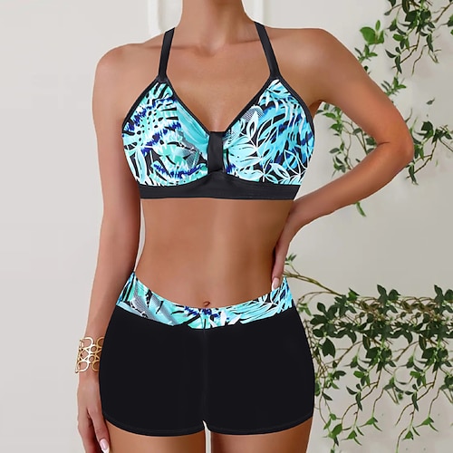 Per donna Costumi da bagno Due pezzi Shorts Costume da bagno Senza schiena Vacanza Abbigliamento da Spiaggia Floreale Girocollo Senza Maniche Costumi da bagno