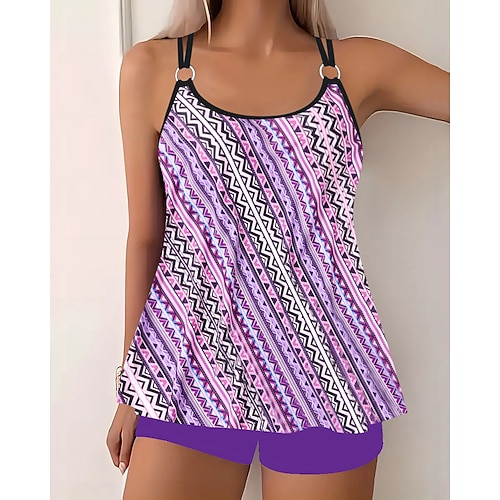 Per donna Costumi da bagno Tankini Gonna Costume da bagno Coulisse Elegante Vacanza Ombre Grafico Collo a U Senza Maniche Costumi da bagno