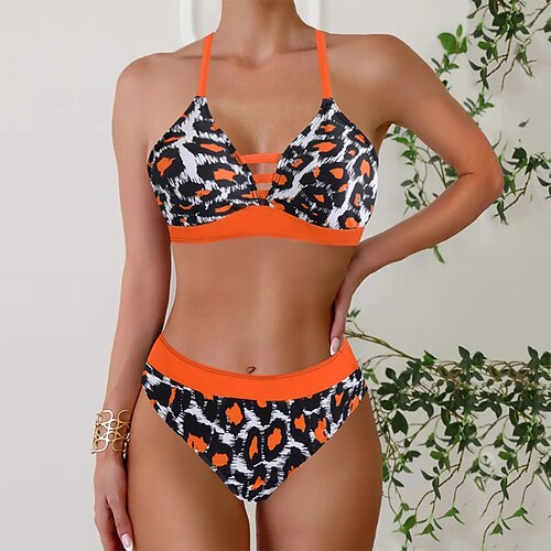 Per donna Costumi da bagno Tankini Due pezzi Gonna Costume da bagno Elegante Vacanza Grafico Tropicale Scollo a V Senza Maniche Costumi da bagno