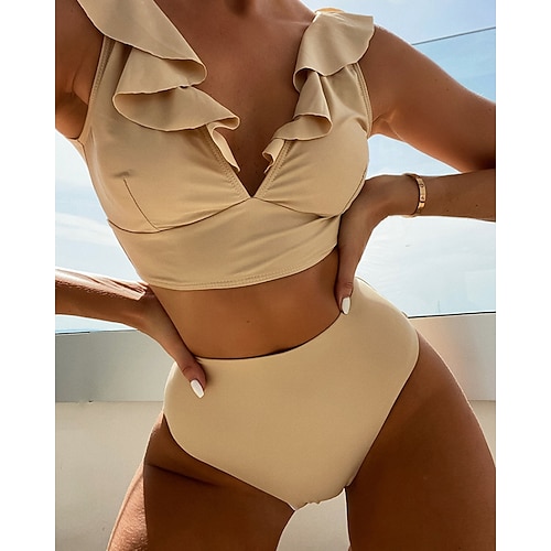 Per donna Costumi da bagno Due pezzi Birichino Costume da bagno Volant Senza schiena Vacanza Abbigliamento da Spiaggia Semplice Scollo a V Senza Maniche Costumi da bagno