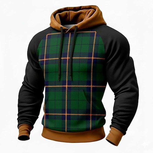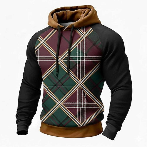 Per uomo Geometrico Plaid Felpa con Cappuccio Felpa Moda Quotidiano Girocollo Casa Abbigliamento casual alla moda Feste Blu Rosso Marrone Verde Coulisse Autunno Inverno progettista S M L XL XXL XXL