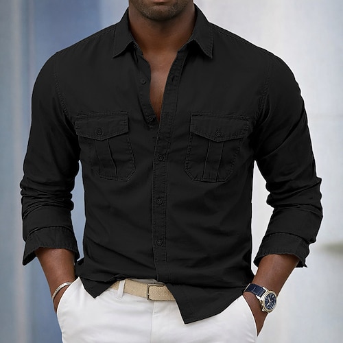 Per uomo Camicia Camicia casual Camicia da lavoro Camicia con Bottoni Nero Bianco Verde Kaki Verde militare Manica Lunga Semplice Colletto a Camicia Casuale Quotidiano Tasca Frontale Abbigliamento