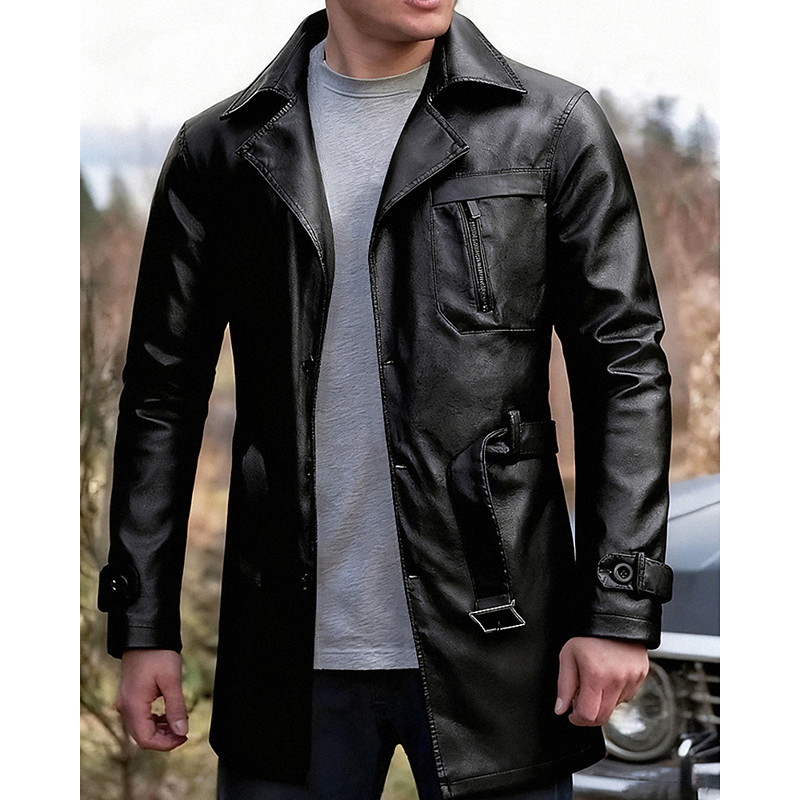 Men's Faux Leather Jacket Biker Jacket Motorcycle Jacket Vacation Daily Windproof Warm Pocket Spring Fall Plain Fashion Classic Lapel Regular Black Coffee Jacket