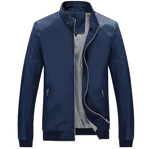 Men's Faux Leather Jacket Transition Jacket Biker Jacket Motorcycle Jacket Vacation Daily Windproof Warm Pocket Fall Winter Plain Fashion Classic Stand Collar Regular Faux Leather Black Blue Jacket