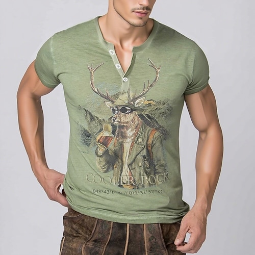 bavarese Monaco Tedesco Corte Maglietta Lederhosen Match Camicia Henley Cervo Grafico per Per uomo Adulti Stampa 3D per Carnevale Birra Oktoberfest Feste