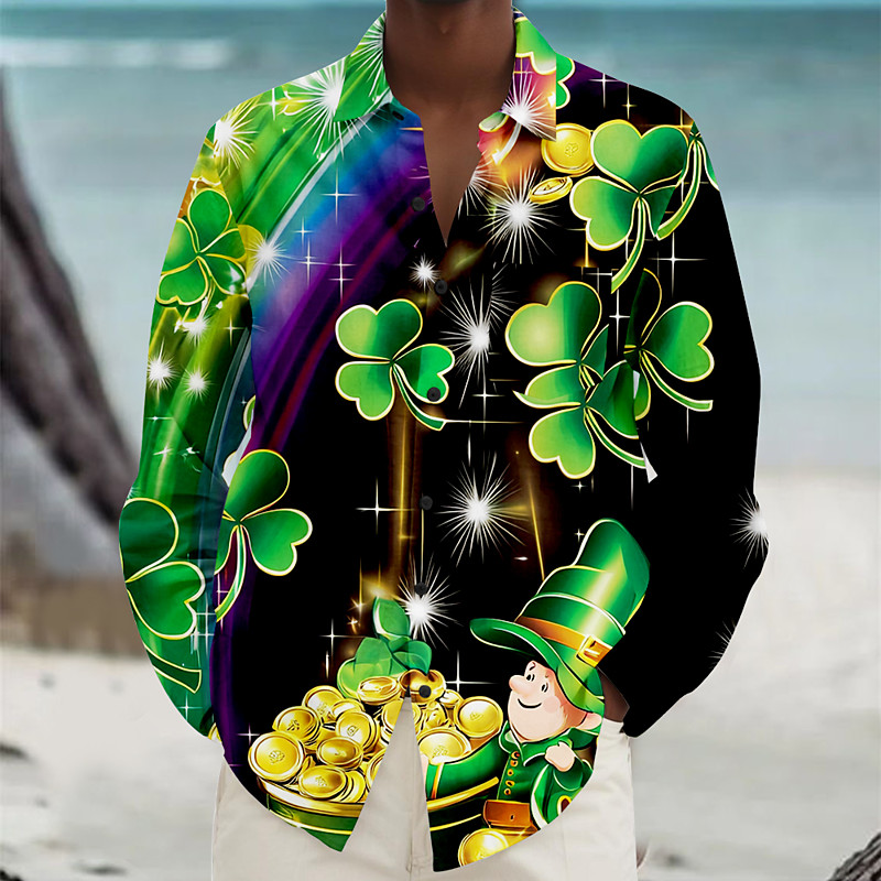 St. Patrick's Day Men's Four Leaf Clover Lucky Clover Gold Coin Trousers Disco Pants 60s 70s Bell Bottoms Mid Waist Vintage Retro Holiday Side Pockets Flared Leg Pants Trousers Spring Fall 3D Print