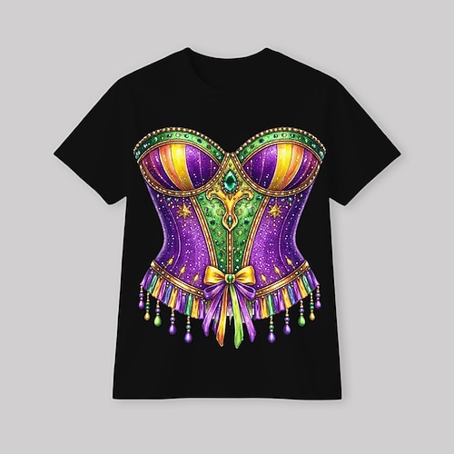 Martedì Grasso 2026 Corte T-shirt per Per donna Adulti Stampa a caldo per Carnevale martedì grasso Club Festival