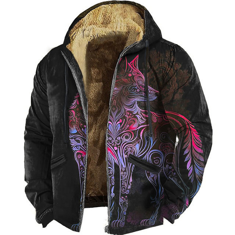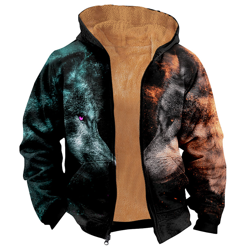 Men's Wolf 3D Print Fleece Hoodie Jacket Sweatshirt Classic Military Hunting Crew Neck Outdoor Camping Brown Brown 2 Brown 3 Zip Up Fall Winter Designer S M L XL 2XL 3XL