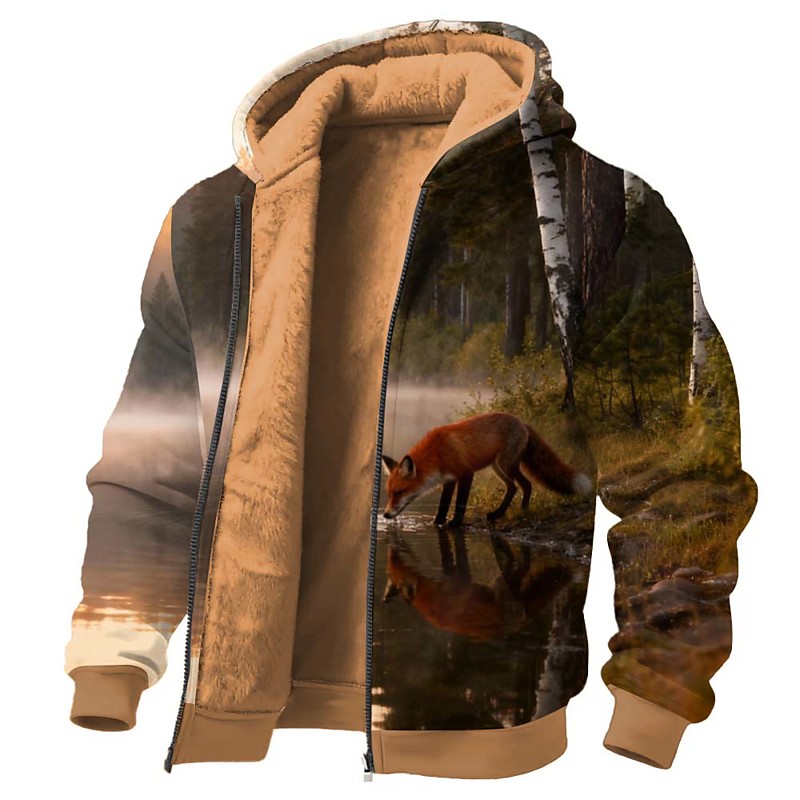 Men's Fox 3D Fleece Hoodie Sweatshirt Viking Vintage Retro Long Sleeve Crew Neck Outdoor Streetwear Yellow Red Blue Green Drawstring Fall Winter Designer S M L XL XXL XXXL