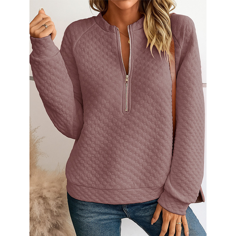 Women's Set Casual Long Sleeve Half Zip Regular Tops Light Pink Light Green Wine Dark Pink Blue Spring Fall