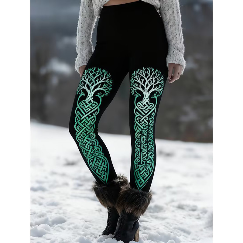 Women's Viking Leggings Cozy Leggings Vacation Vintage Ethnic Style Full Length High Waist Graphic Tree Printing Comfortable Stretchy Outdoor Vacation Casual Green Spring Fall Winter Slim Fit