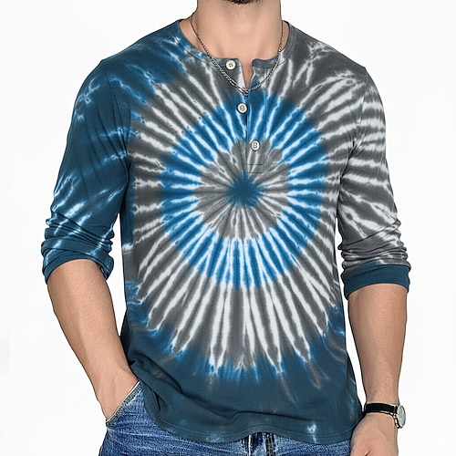 Per uomo Tinta a nodi Retrò Vintage Maglia Henley Maglietta Camicia a Maniche Lunghe Manica Lunga Moda Streetwear Essenziale Vacanza Casuale Sportivo Primavera Autunno Blu azzurro cielo Viola